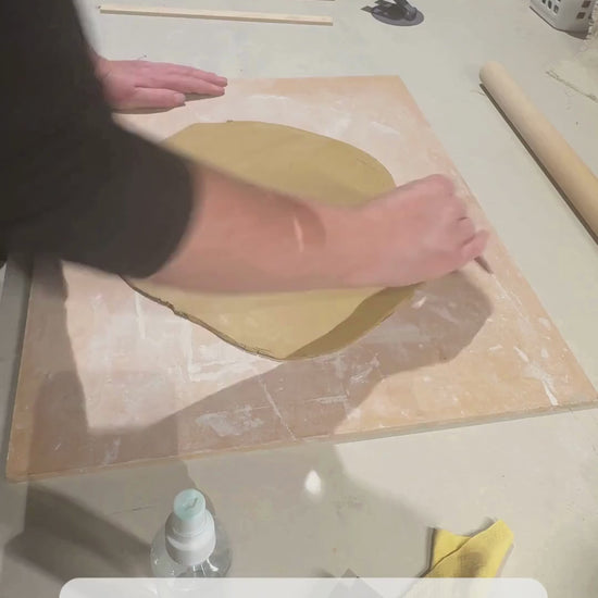 I use tar paper as a template for handbuilding, as can be seen in the video below. For this simple rectangular template the paper can be easily cut by hand with a craft knife and metal ruler. A cutting machine such as a Cameo or Cricut can be used for more precision, or with a more detailed template. Tar paper can also be used with slab construction. It is stiff enough to provide support during construction and drying, and easy to peel away once the clay is harder.